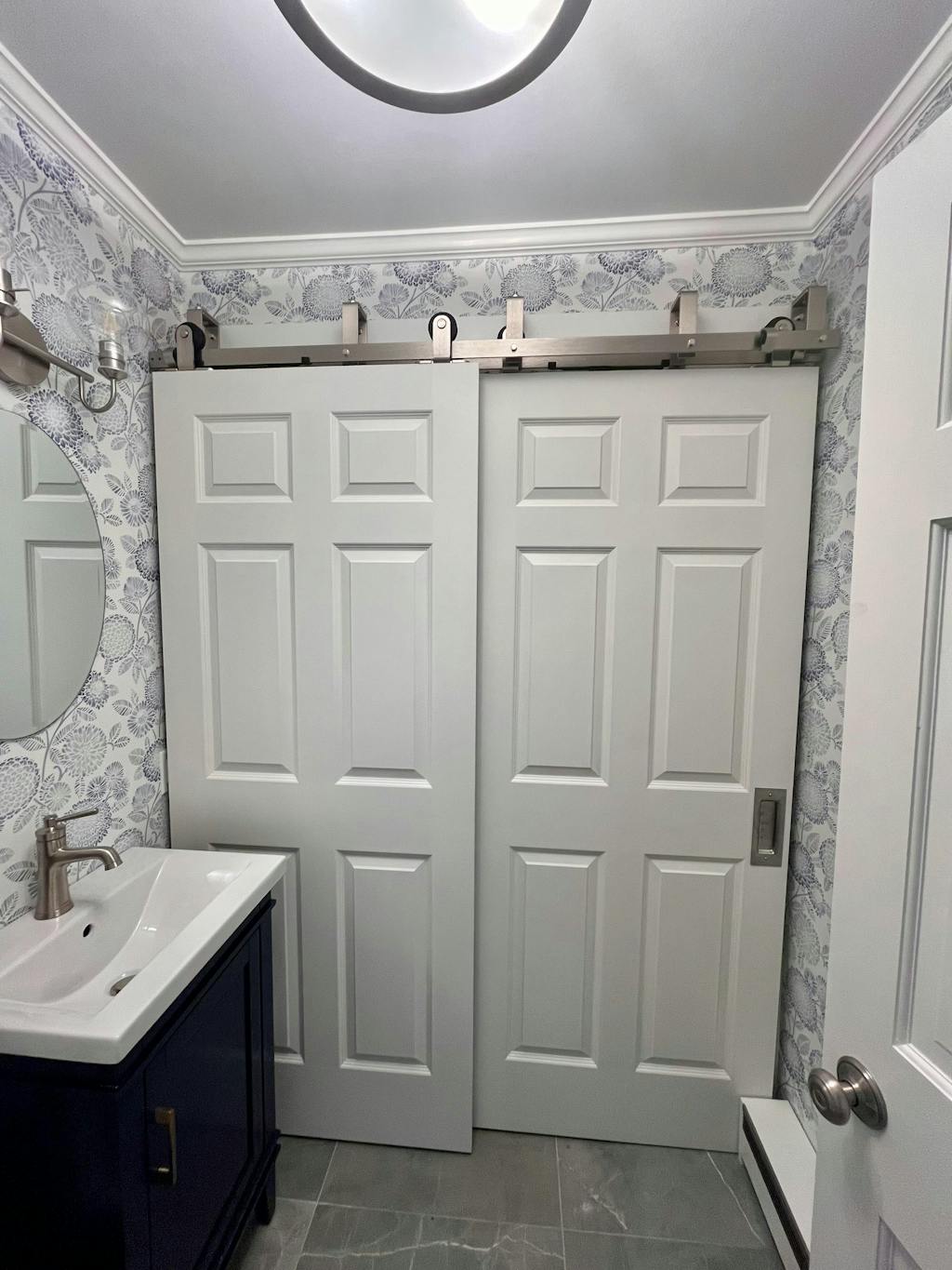 This barn door track was exactly what we needed for our tight space. We had two local handymen turn down our installation job with the first barn door track we bought from another company because there wasn't enough room.