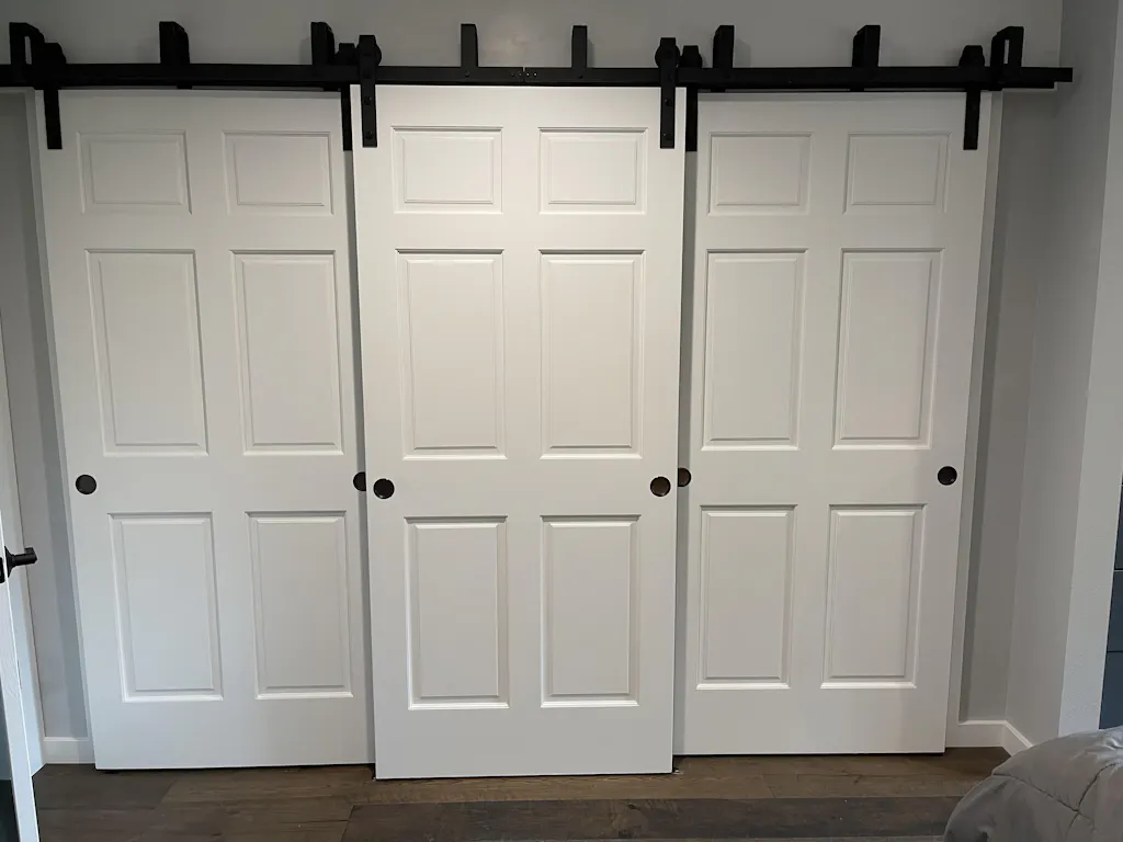 Jared used the Classic Strap Bypass Barn Door Hardware Kit in the 3-door configuration to close off his pantry and closet. His installation went smoothly and the resulting barn doors and hardware look amazing!